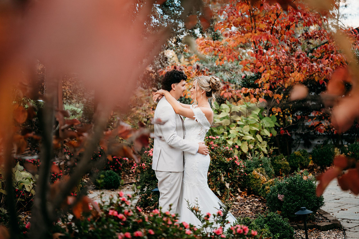 We stepped out to the gardens for couple portraits right as the sun was dipping. The stone fireplace and the autumn foliage gave us a warm, romantic palette.